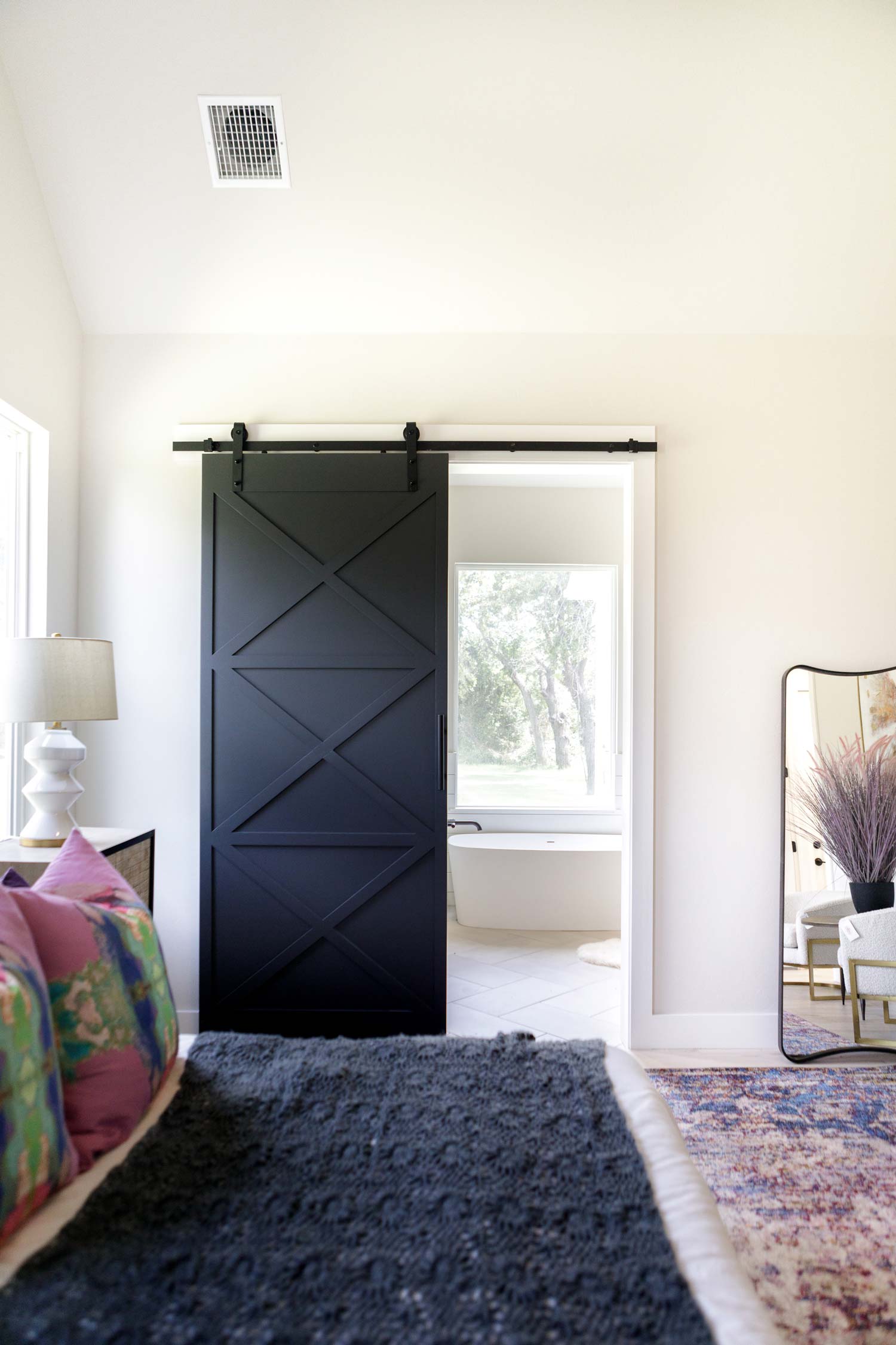 We love texture and line play. You’ll notice a lot of that throughout this modern farmhouse – from the sliding barn doors and arched entryways to the complementary stone and tile work.