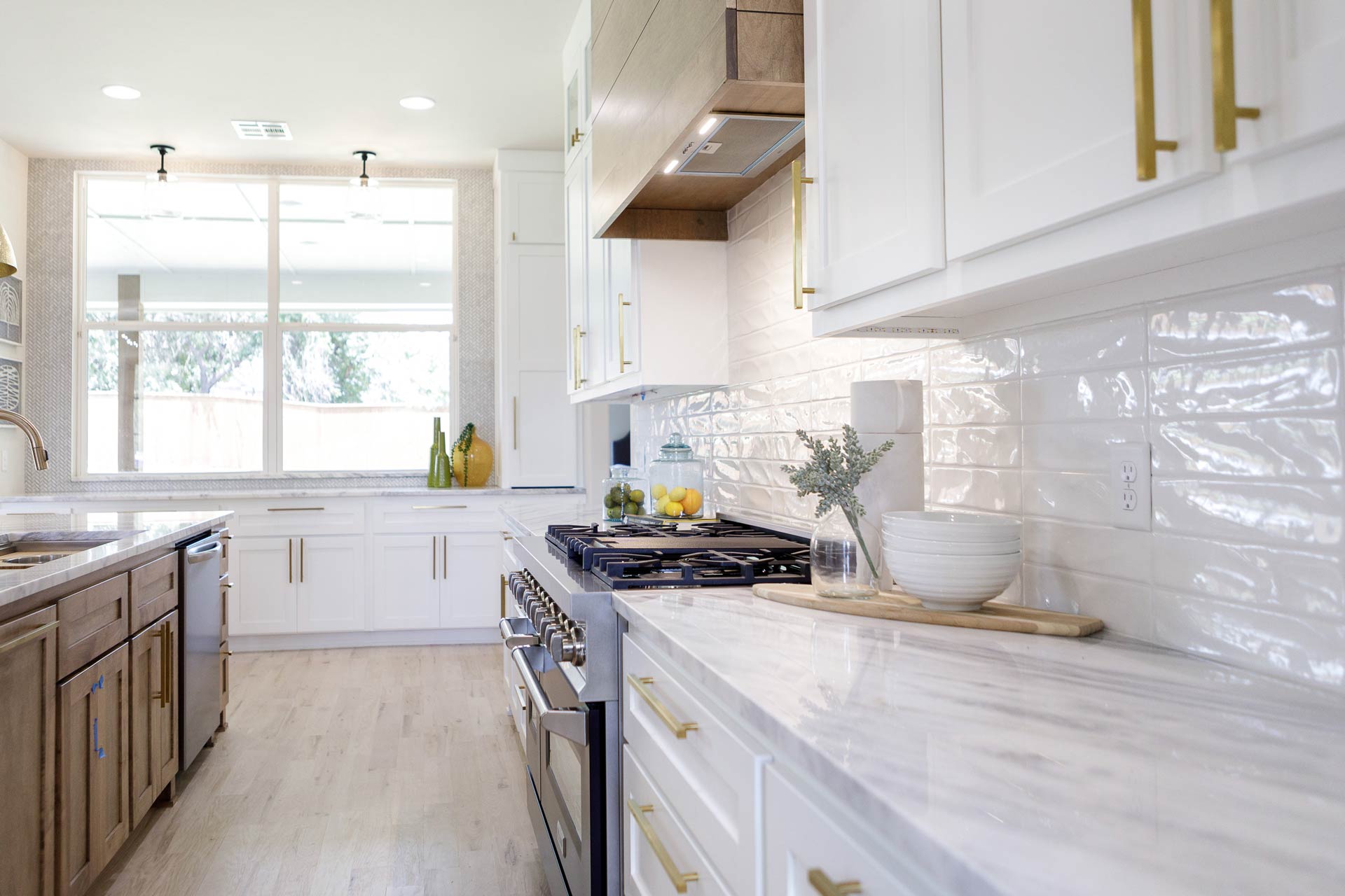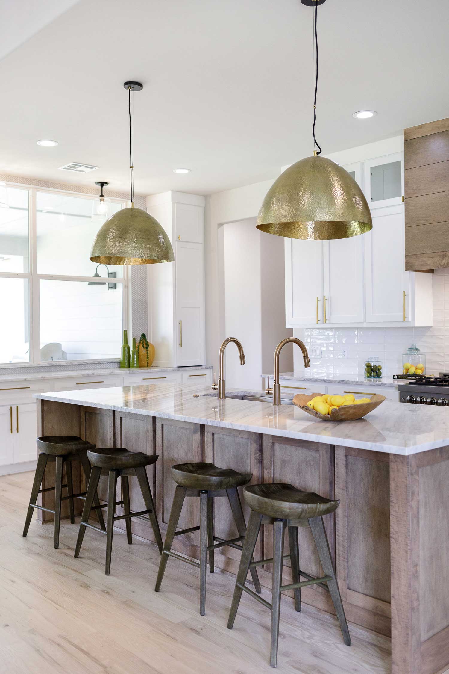Timeless texture, check. Herringbone tile, Italian marble, and textured subway paired with rustic wood, and brass hardware and fixtures was key to creating a cozy, but elevated farmhouse kitchen.
