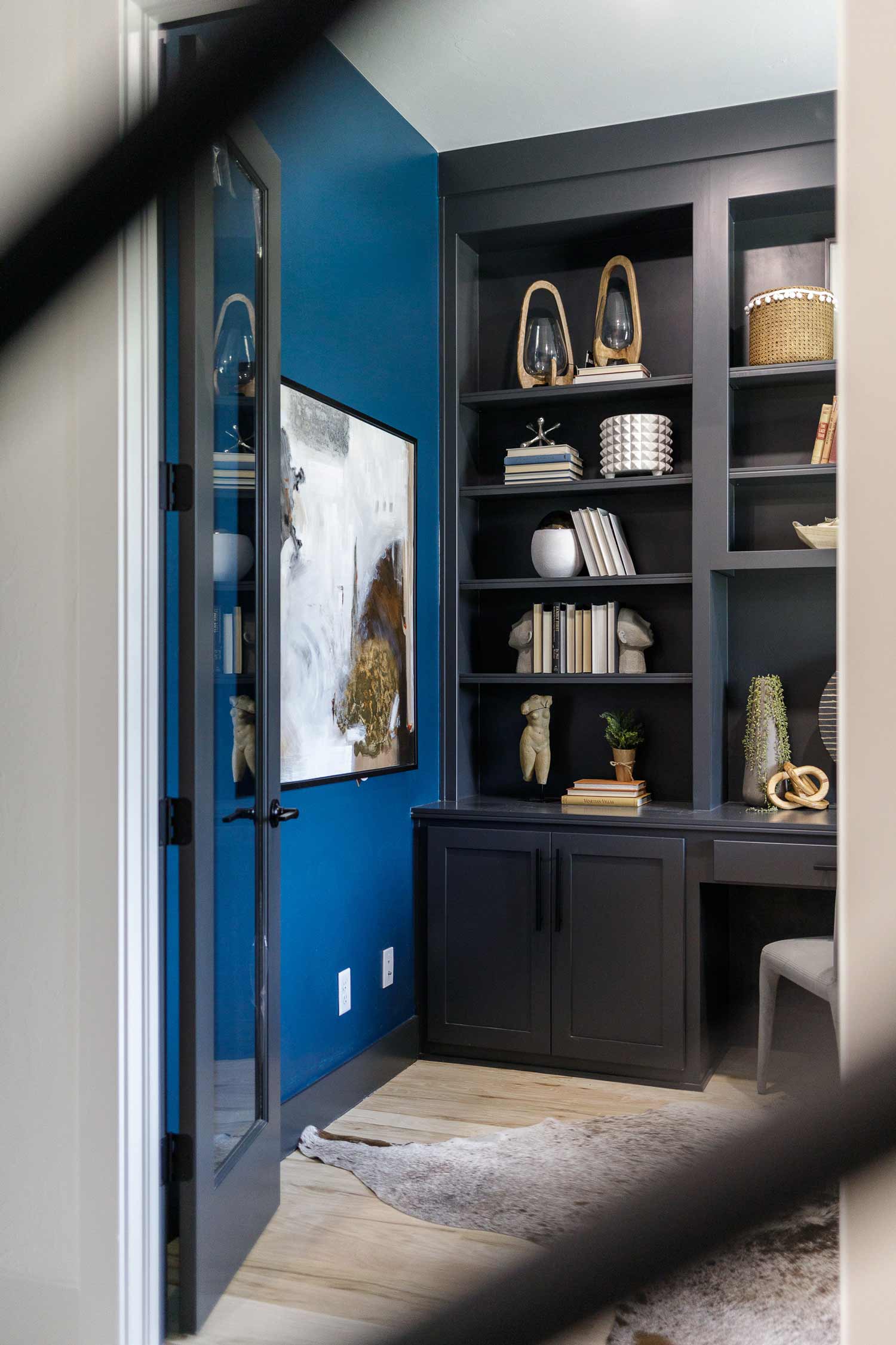 All white everything was not the goal for much of this house – instead, high points of contrast for things like built-ins and stonework helped create sophistication with a bit of an edge.