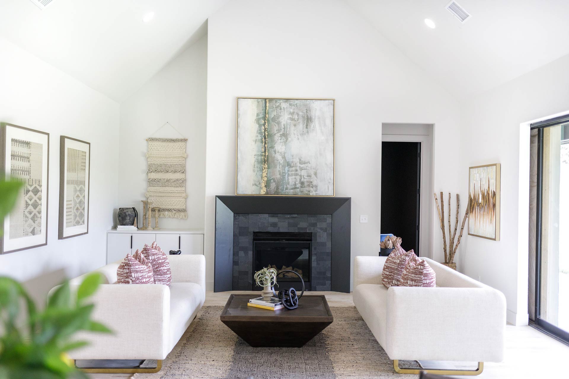 Using texture in a unique way, along with contrast and varying lines throughout the space was important. And as a way to flood the space with natural light – while making the living room feel extended to the outdoors – we added panoramic sliding doors.